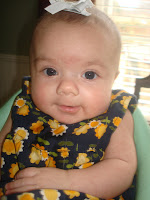 Baby sister is battling a sinus infection right now. She has had a cough/cold/congestion for about 2 weeks and she was getting worse instead of better so I took her up to the peditrician this morning. The doctor said his theory was if the symptoms still lingered after 10 days you needed to go to plan B. Well we were right at about 13 days of trying to battle it with the cough/cold medicine which was only helping a little. His plan B is to put her on an antibiotic and to up the dosage of the cough/cold medicine. Poor thing sounds so raspy when she is breathing and has a barking cough. Even though she sounds crummy, she is still the happiest baby ever! She is having a hard time settling down tonight. She is all stopped up and can't breathe out of her nose so she keeps having to spit out her paci to breathe which makes her mad cause she wants that paci! Needless to say, momma hen is up watching her baby very closely! Hopefully this antibiotic will kick in by tomorrow and she will be back to feeling better! She was 12lbs 3oz today.